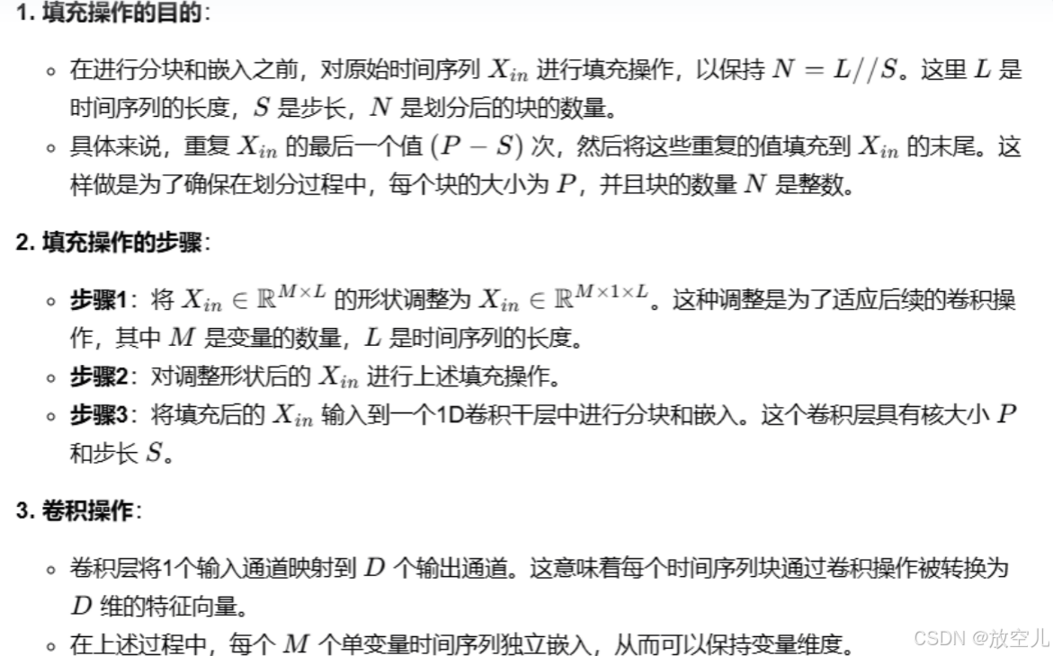- 变量混合嵌入:整个多变量时间序列被视为一个单一的样本,该样本具有M个特征(M是变量的数量),并作为一个整体进行嵌入处理