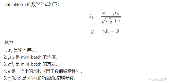- BatchNorm 依赖于 mini-batch:BatchNorm 的归一化是基于 mini-batch 的统计量(均值和方差),这使得它在训练时能够动态适应数据分布的变化。