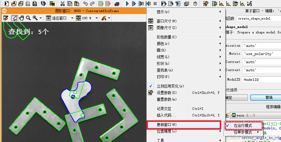 参考Halcon样例位于HDevelop示例->方法->模板匹配(基于形状)->pm_multiple_models.hdev