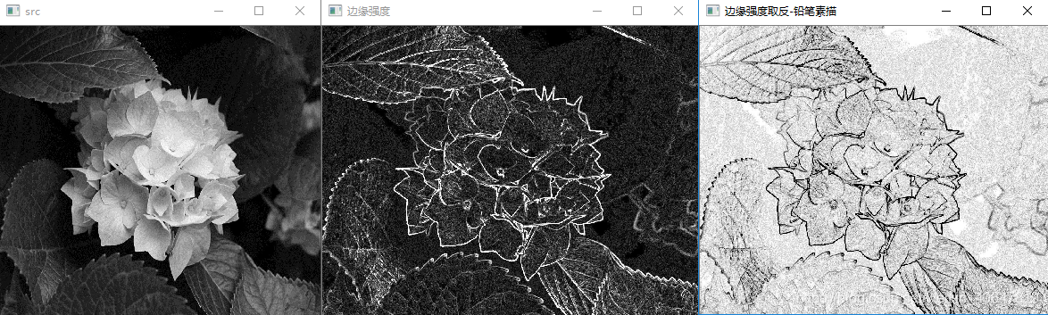 imshow("边缘强度取反-铅笔素描",255-dst);