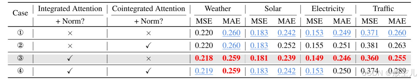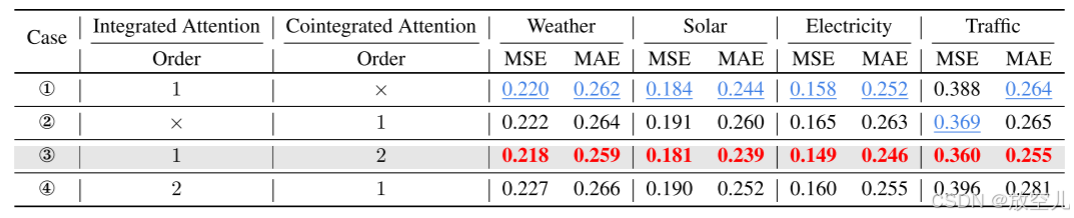 - 研究集成注意力(Integrated Attention)和协整注意力(Cointegrated Attention)对模型性能的影响及其顺序