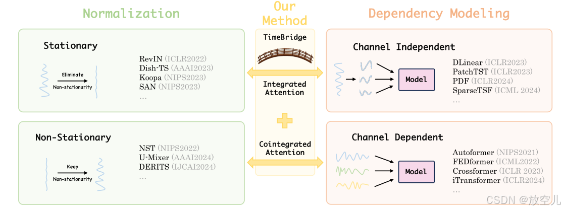 时间序列预测方法分为Normalization和Dependency Modeling