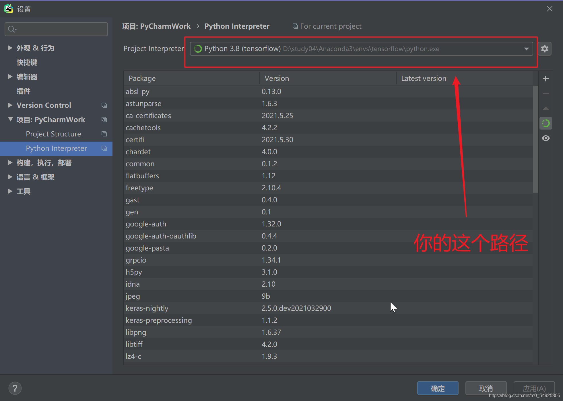 你其实要找的就是项目解释器路径