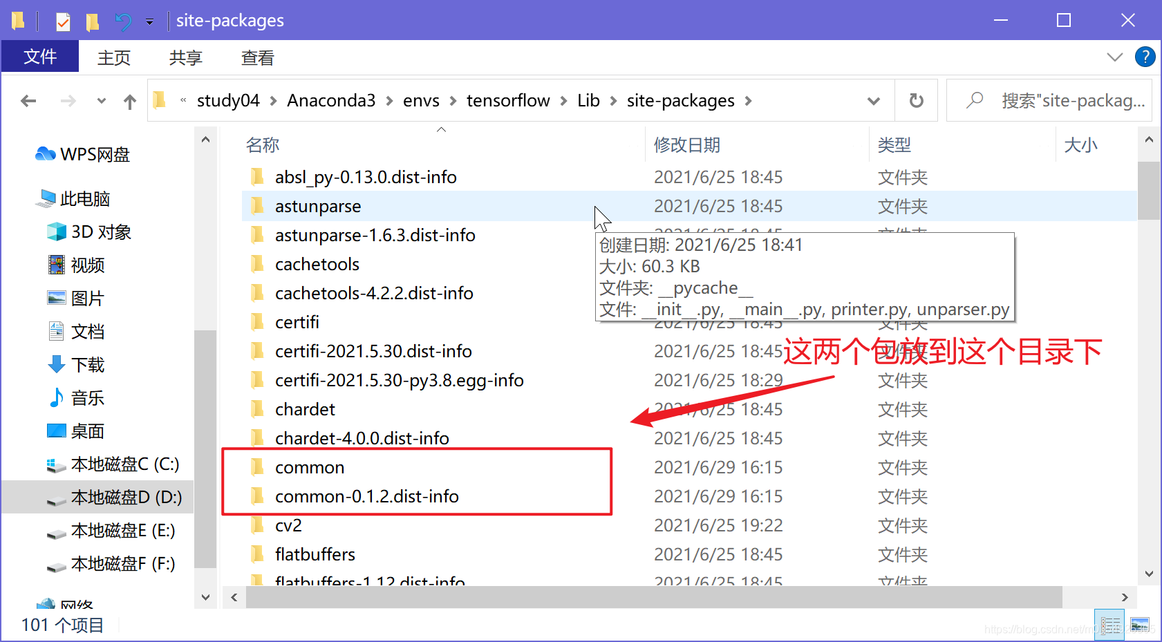 直接在cmd下安装或者无论进入一级目录下( pip install 安装包)安装都没用,它都不会安在你所在的目录下,因为它只会安装在pip默认的安装目录下