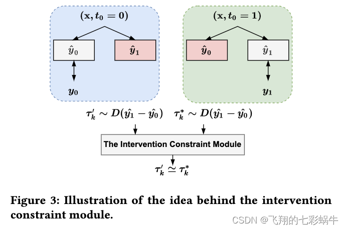 干预约束模块。由于在在线营销场景中,不同处理的分配通常不是随机的,这意味着收集的训练集通常在对照组和治疗组之间存在显着差异。如图 3 所示,由于每组中只有一种类型的响应可用于监督训练,因此组间分布的差异会加剧组间估计 ITE 存在显着差异,.因此,忽略这种差异可能会增加 ITE 估计的难度并损害准确性。为了缓解这个问题,我们提出了一个简单但有效的干预约束模块。该模块背后的想法是增加从不同组的ITE分布中猜测相应组的难度,即通过相互干扰实现两者之间的权衡。先前的研究表明,组间ITE分布的相似性有利于提升建模[9]。具体来说,我们使用与提升密切相关的嵌入表示 e푡 来预测该实例属于哪个组。然后,我们使用逆组标签对其进行训练以生成如上所述的扰动。‘