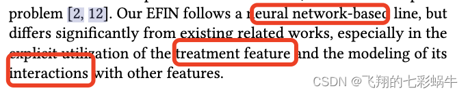 特征交互旨在对不同特征之间的组合进行建模,并已被证明可以显着提高响应模型的性能 [22, 23]。现有的特征交互方法主要可以分为三类,包括二阶交互、高阶交互和结构交互。在二阶交互中,两个特征的嵌入表示之间的内积通常是考虑分解机及其变体是代表性方法[15,26]。高阶相互作用的建模依赖于神经网络,已经提出了许多架构来提高模型性能、可解释性和高效融合低阶和高阶相互作用[13,33]。此外,基于图结构,一些方法旨在利用额外的结构信息来进一步提高高阶交互[18,20]。尽管特征交互在许多任务上都取得了成功,但仍然缺乏对其在隆升建模中的应用的研究。我们的 EFIN 旨在弥合这一研究方向的差距。