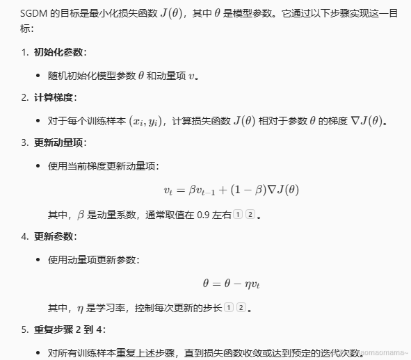 两个超参数:学习率 、 动量系数 (梯度累计中,上一次梯度的比例)