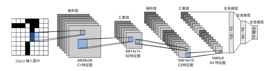 该网络结构和 LeNet(LeNet-5)的网络结构基本一致。(对原始模型做了一点小改动,去掉了最后一层的高斯激活。除此之外,这个网络与最初的LeNet-5一致。)