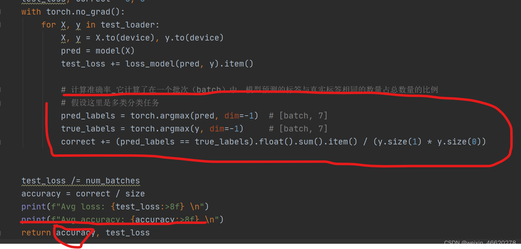 # 计算准确率_它计算了在一个批次(batch)中,模型预测的标签与真实标签相同的数量占总数量的比例