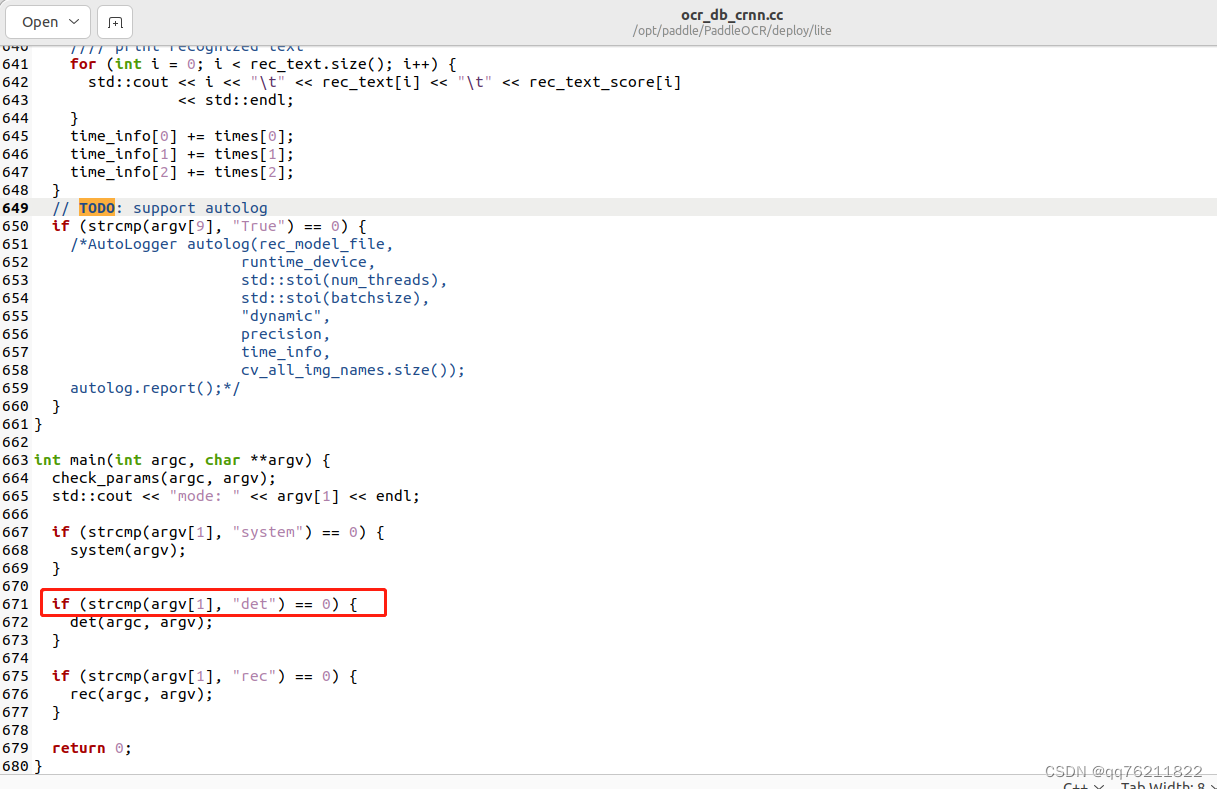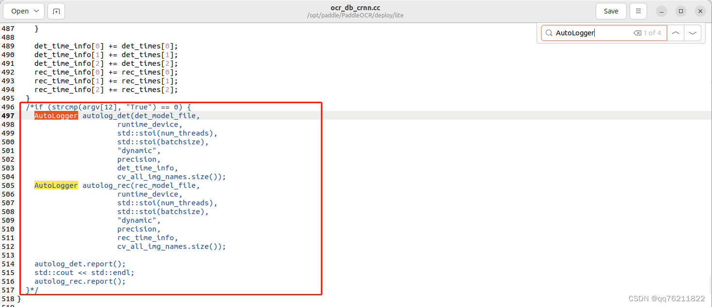 打开ocr_db_crnn.cc文件,注释掉#include "AutoLog/auto_log/lite_autolog.h",如图