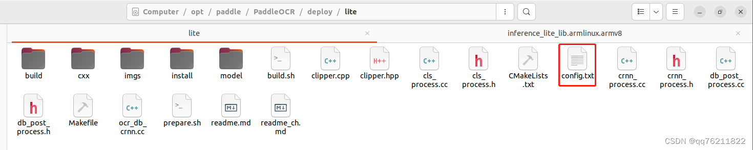 1.其中config.txt是在PaddleOCR/deploy/lite目录下