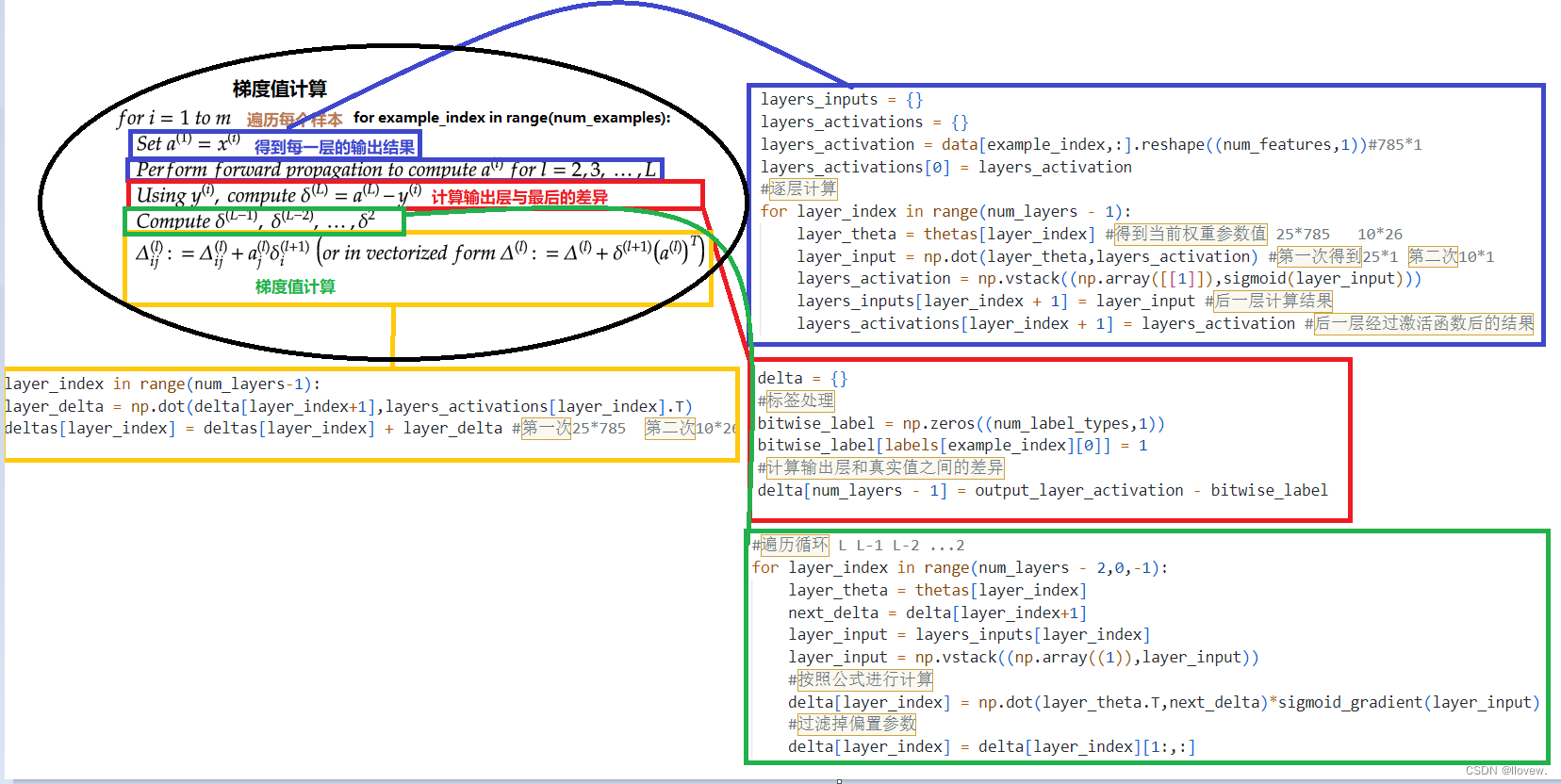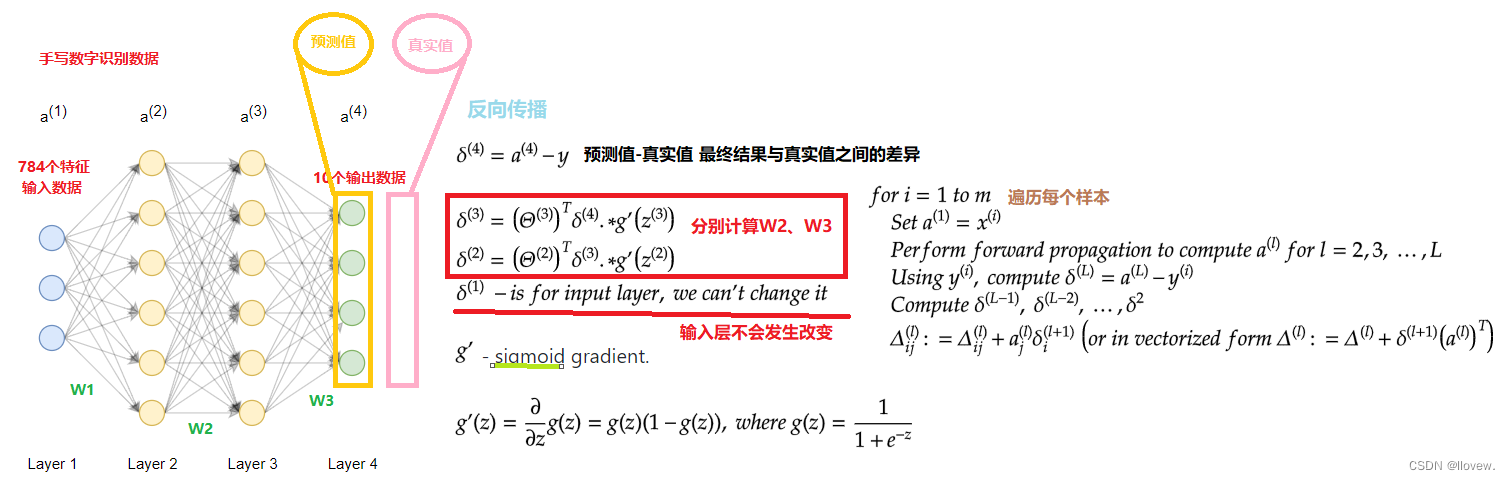 然后更新梯度值调整权重参数,前向传播加反向传播,整体一次迭代"""