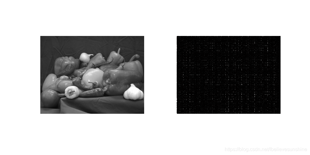 左图为原来的灰度图像,右图为Hadamard变换的结果