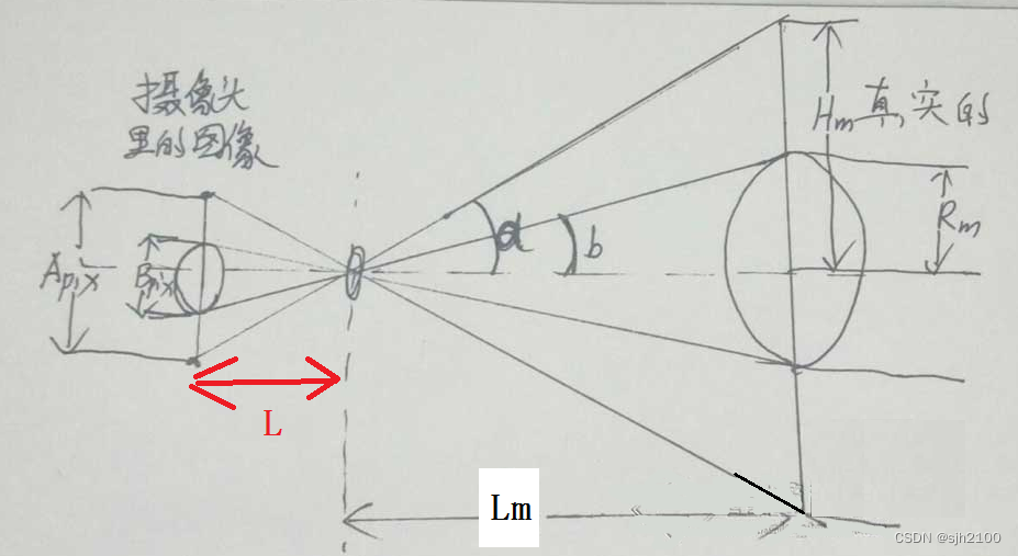假设物体就是一个小球,小球大小Rm不变,距离镜头的位置Lm是可变的。