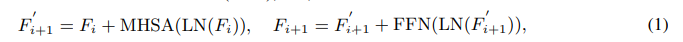 d×W d×C,其中d(例如,默认为16)是贴片嵌入层的下采样率,C是通道维度。之后,嵌入的令牌由几个转换器层处理,每个转换器层由多头自注意(MHSA)层和前馈网络(FFN)组成,即