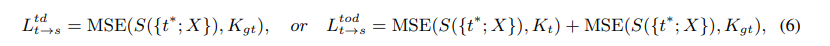 其中,Kgt是真值实况热图,X是输入图像,表示教师的预测,T*表示使损失最小化的最优令牌。之后,知识令牌t*被冻结,并在训练期间与学生网络中的视觉令牌连接