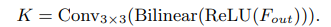 具体而言,我们使用双线性插值将特征图直接上采样4次,然后使用ReLU和核大小为3×3的卷积层来获得热图,即。,
