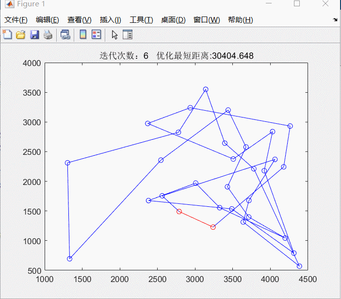 全国31个省会的坐标为[1304 2312;3639 1315;4177 2244;3712 1399;3488 1535;3326 1556;3238 1229;4196 1044;4312 790;4386 570;3007 1970;2562 1756;2788 1491;2381 1676;1332 695;3715 1678;3918 2179;4061 2370;3780 2212;3676 2578;4029 2838;4263 2931;3429 1908;3507 2376;3394 2643;3439 3201;2935 3240;3140 3550;2545 2357;2778 2826;2370 2975]