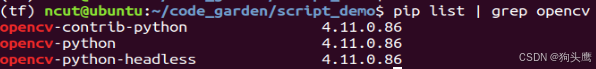 最初,我没有安装 opencv-contrib-python,无法显示 GUI 界面,既 cv2.imread() 语句会出错。)被移除,因为它们依赖于 GTK 或 Qt(窗口管理库)。headless 专为无 GUI 环境设计,如服务器。假设你是 ubuntu环境,在 bash 中,输入。且 不同 opencv版本,可能存在不同的结果。版本通常包含完整的 GUI 支持。及相关 GUI 函数(如。