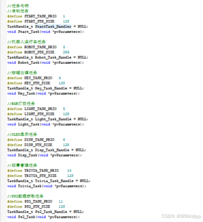 为了能够方便调度底层控制板速度,灯光,蜂鸣器等任务,我们采用freertos.他很方便方便地实现任务切换和调度,提高系统的响应速度和效率。主要有下面几个任务,如下