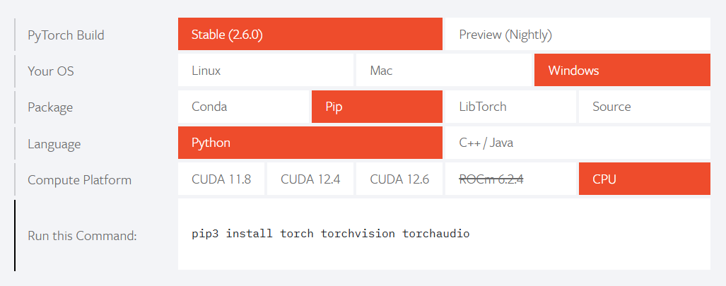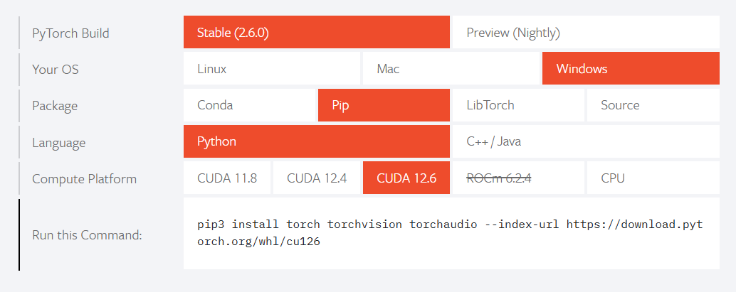 pip3 install torch torchvision torchaudio --index-url https://download.pytorch.org/whl/cu126