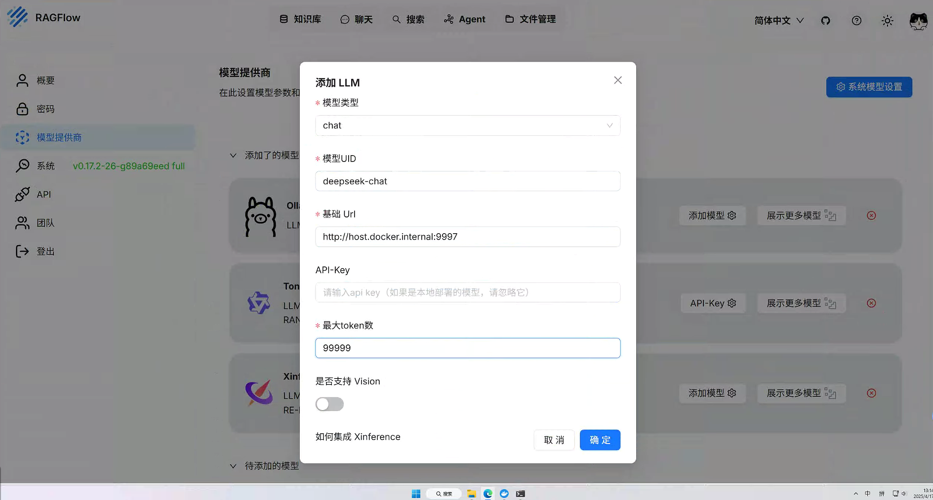2、配置Xinference安装的大模型