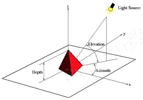 - 光源相对于图像的俯视角为 eLevation,方位角为 Azimuth
