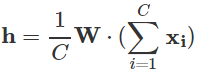 我们先来理解输出是怎么从输入计算得到的。假设我们已经得到了权重矩阵(下一节介绍是怎么训练的)。第一步是计算隐层的输出h,公式如下: