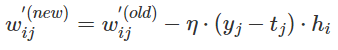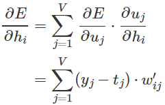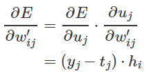 是实际输出单词的下标。下一步是推导隐层-输出层的权重W′的更新公式,然后是推导输入-隐层的权重W的更新公式