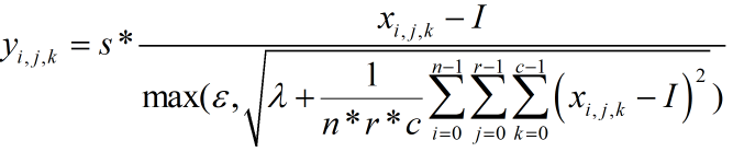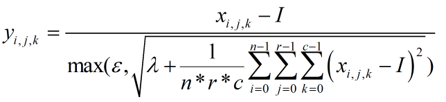 然而在实际情况中,很有可能遇到图像数据的标准差为0或者很小的情况(图像数据变化很小),导致标准化后的数据会变得很大,这与我们“把数据钳制到一定范围内”的初衷背道而驰了。为解决这个问题,人们在上式中增加了λ和ε两个参数: