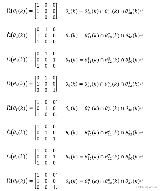 由确认矩阵按上述两条原则,可穷举搜索的8个关联矩阵及相应的联合事件为: