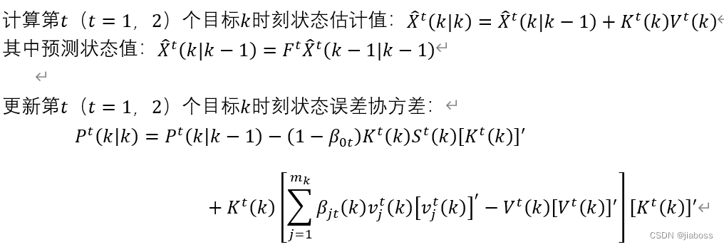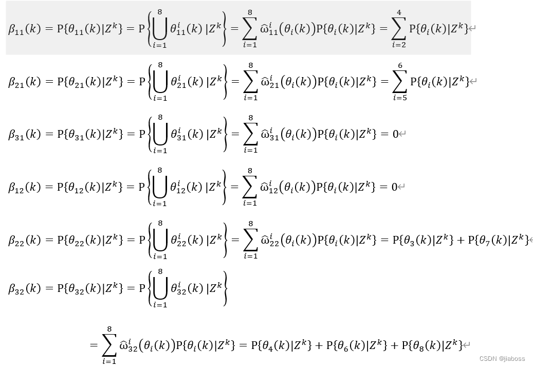 ,即第一个量测来源于假目标或者目标1;对于第二个量测(确认矩阵得第二行),在第一个量测来源于假目标情况下,其又可分为以下三种情况: