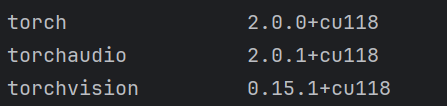 卸载掉有cu118的pip uninstall torch torchaudio torchvision (之前安装的时候使用的是命令:pip install torch==2.0.0 torchvision==0.15.1 torchaudio==2.0.1 --index-url https://download.pytorch.org/whl/cu118)