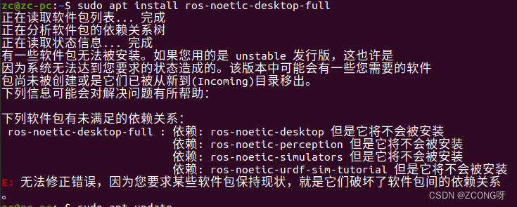 Ubuntu20.04安装ROS遇到的问题