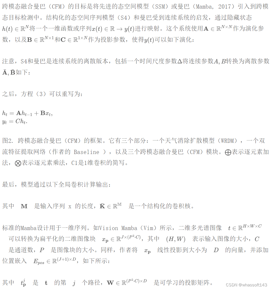 作者提出了一种新方法,带天气消除的跨模态融合曼巴(CFMW),用于不利天气条件下的多光谱目标检测;