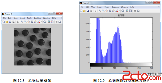 (2)由于该图像为彩色RGB格式图像,而将图像转换为灰度图像进行处理,才能充分发挥MATLAB语言进行图像分析的特长。可以通过以下程序代码将图像进行格式转换,原始灰度图像如图12.8所示,转换后图像显示效果如图12.9所示。在MATLAB命令窗口中输入如下程序代码:
