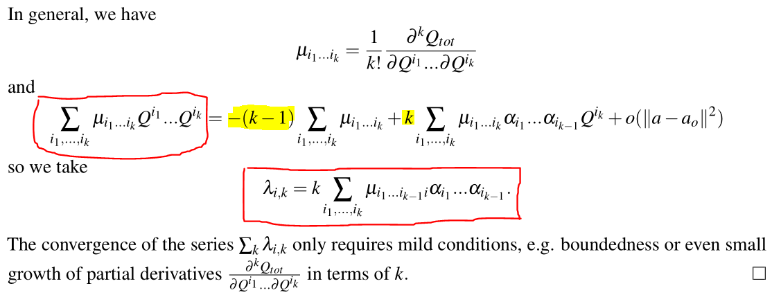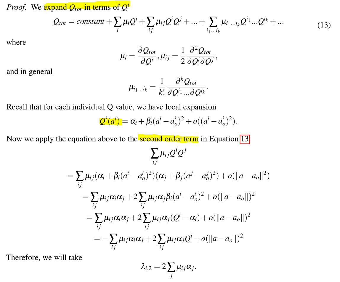 最后的表达式中,将 Q t o t Q_{tot} Qtot与 Q i Q_i Qi的关系表示成了线性。而其参数 λ i , h \lambda_{i,h} λi,h是所有h阶偏导数的函数(例如 λ i , 2 \lambda_{i,2} λi,2对应二阶交叉项 Q i Q j Q_iQ_j QiQj)。