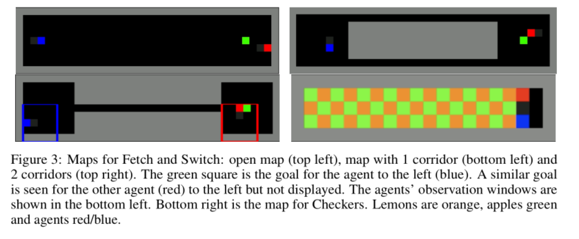 实验所采用的环境是2D 2-Player游戏环境 Switch, Fetch and Checkers
