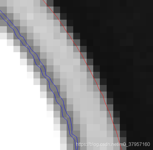 这个是xld,可以看到线和每个像素(小方块)会有不同的交点,这是haolcon自己计算的: