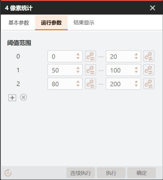 运行参数:这里设定需要统计的阈值范围,比如下图代表我想统计三个区间范围