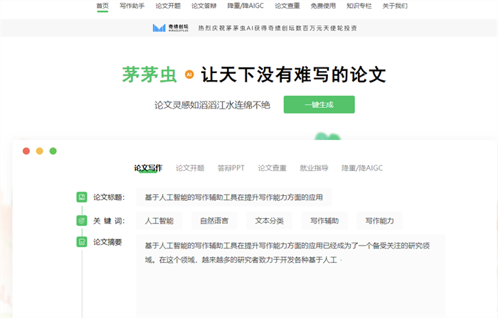 Essay能够一键生成毕业论文初稿、开题报告、文献综述等,减轻学生的写作负担。