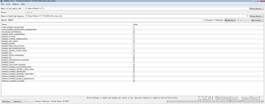 最后点击Generate,生成opencv的vs2019的工程,进入目录后打开工程。