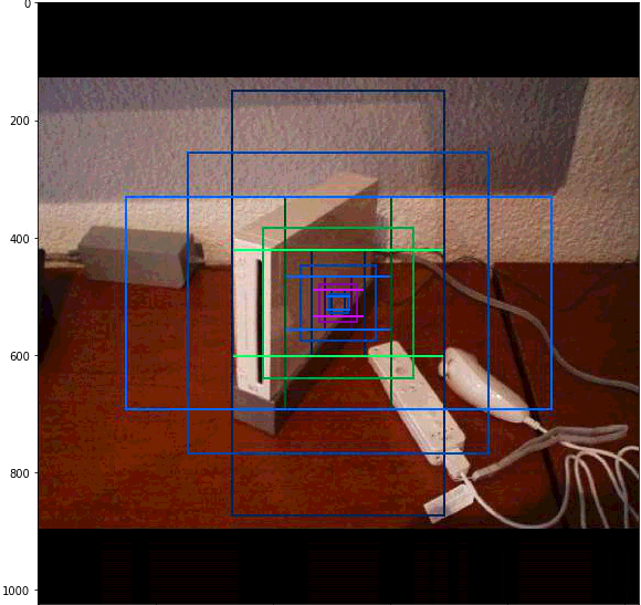 print("Level {}. Anchors: {:6} Feature map Shape: {}".format(level, level_anchors.shape[0],