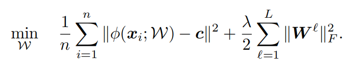 的一个平均值作为超球体中心,也就是说,指定一个超球体中心,通过神经网络将数据尽可能地映射至该