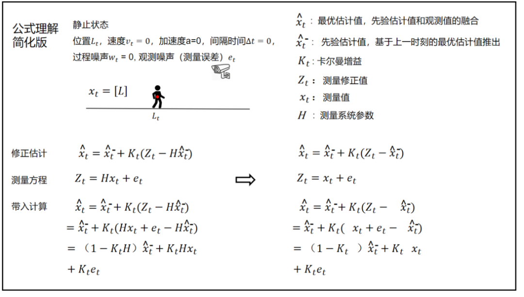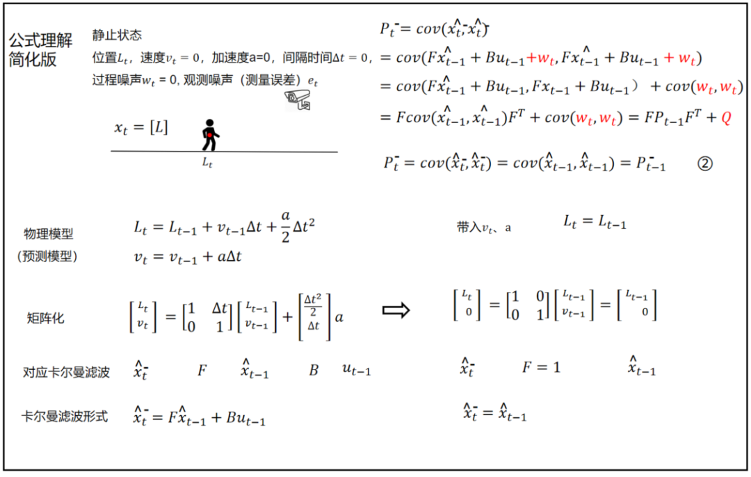 卡尔曼滤波匀加速直线运动和静止情况下公式对比: