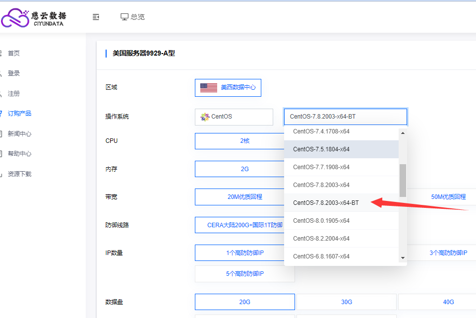 注意订购时,操作系统必须选择centos7.6预装宝塔