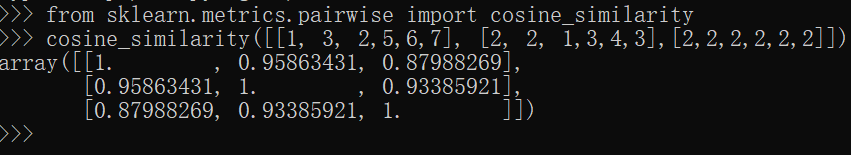 sklearn计算余弦相似度:sklearn.metrics.pairwise.cosine_similarity()