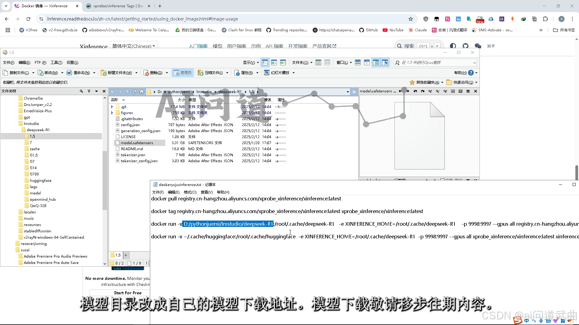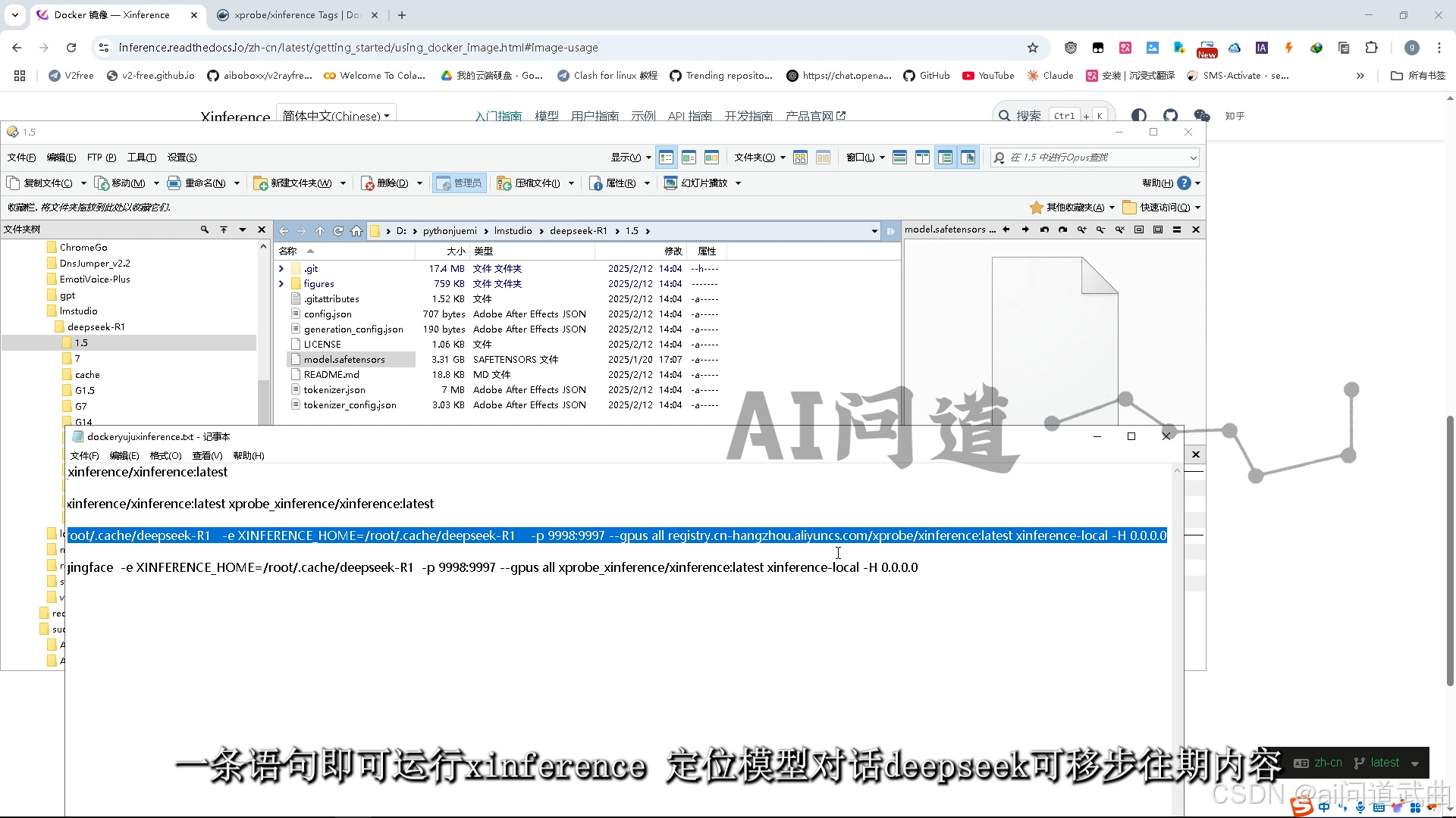 图文教程仅需一条语句。部署运行deepseek。全精度safetensors模型。