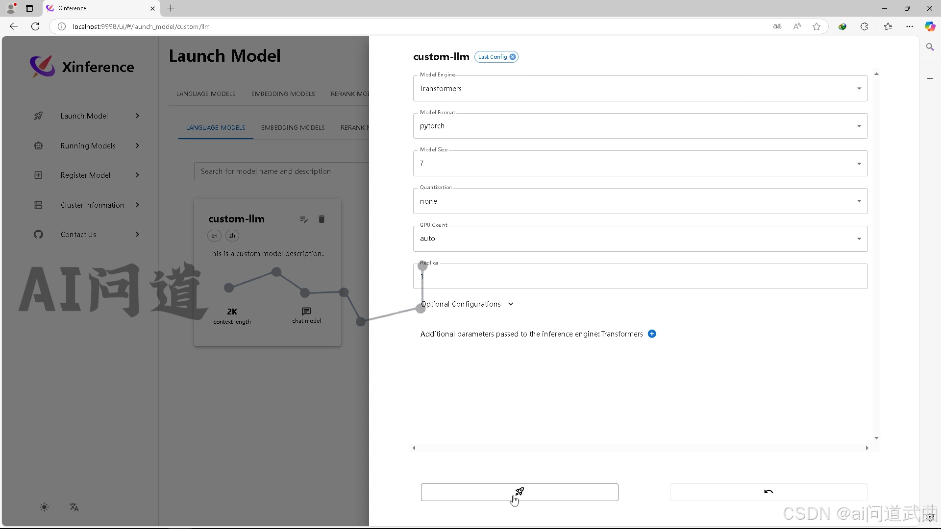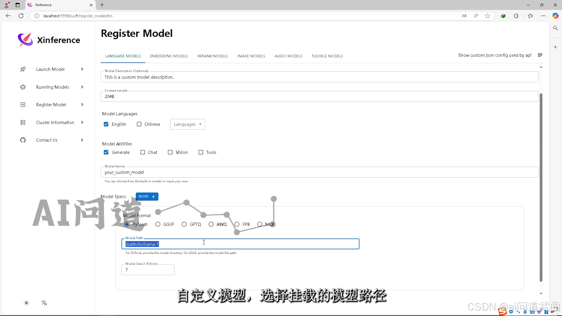自定义模型,选择挂载的模型路径。