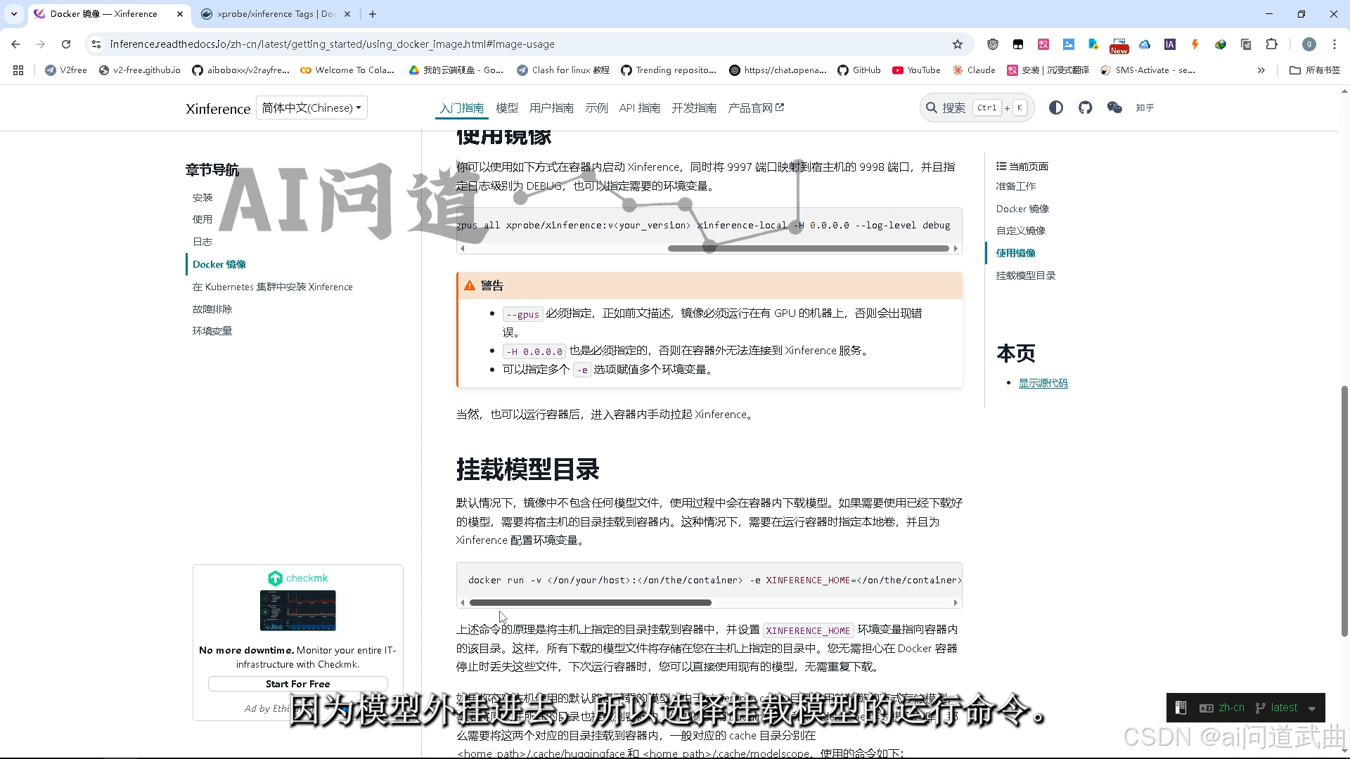 因为模型外挂进去,所以选择挂载模型的运行命令。模型目录改成自己的模型下载地址。模型下载敬请移步往期内容。
